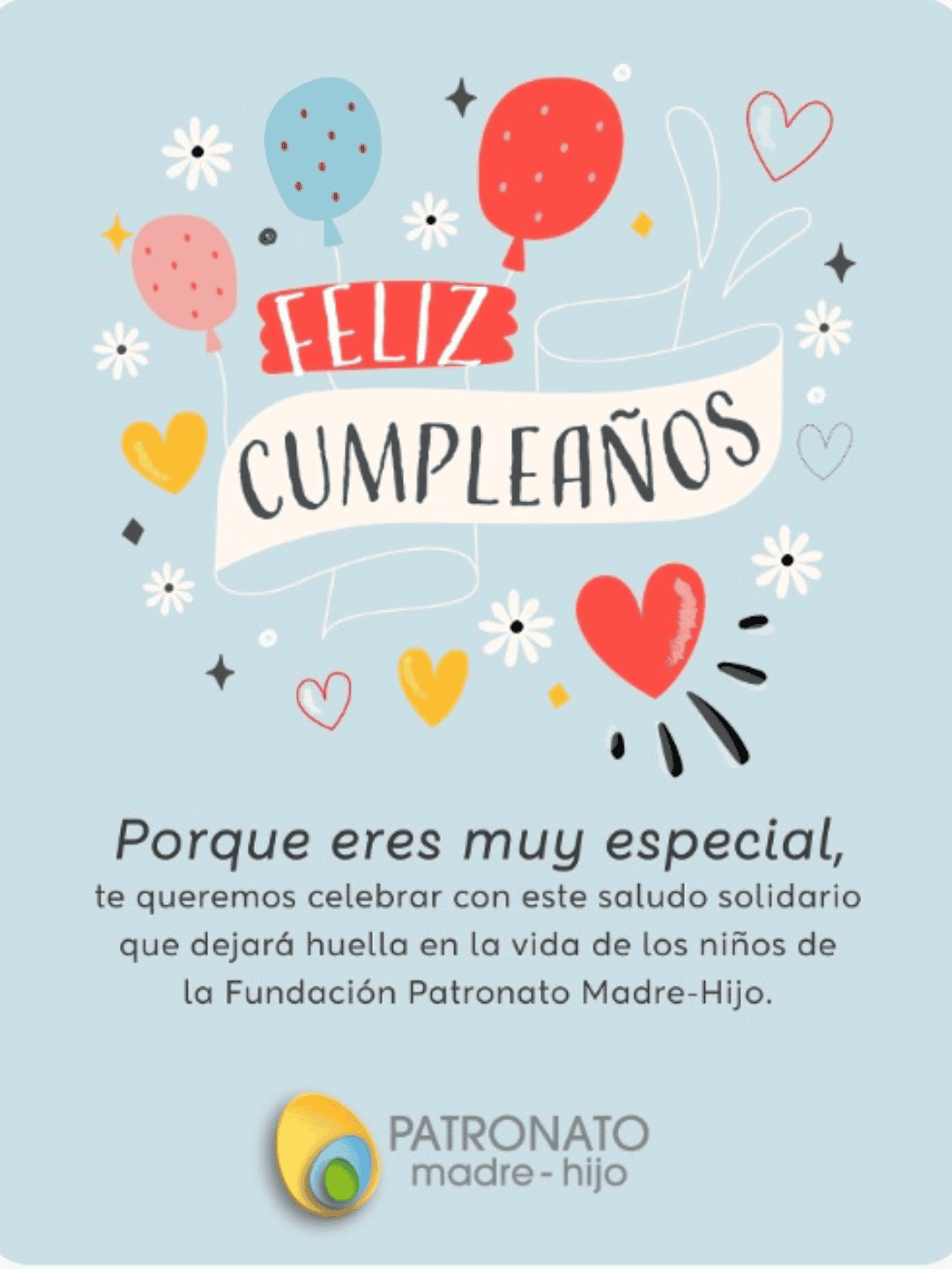 En el Patronato Madre-Hijo contamos con tarjetas virtuales para que puedas acompañar a quienes más quieres de una manera significativa.